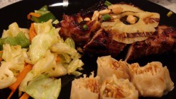 You’re going to love this collection! Episode #66 is a menu of polynesian-asian fusion recipes. The feature ingredients are a pork tenderloin, a can of sliced pineapple and wonton skins. Together, this meal cost me about $20 bucks out of pocket, but really was about $13 all together. The reason the out of pocket cost is higher is that pork tenderloins only seem to be sold in twin packs where I live. So that means I have a pork tenderloin stored away for a future dinner. Cool!