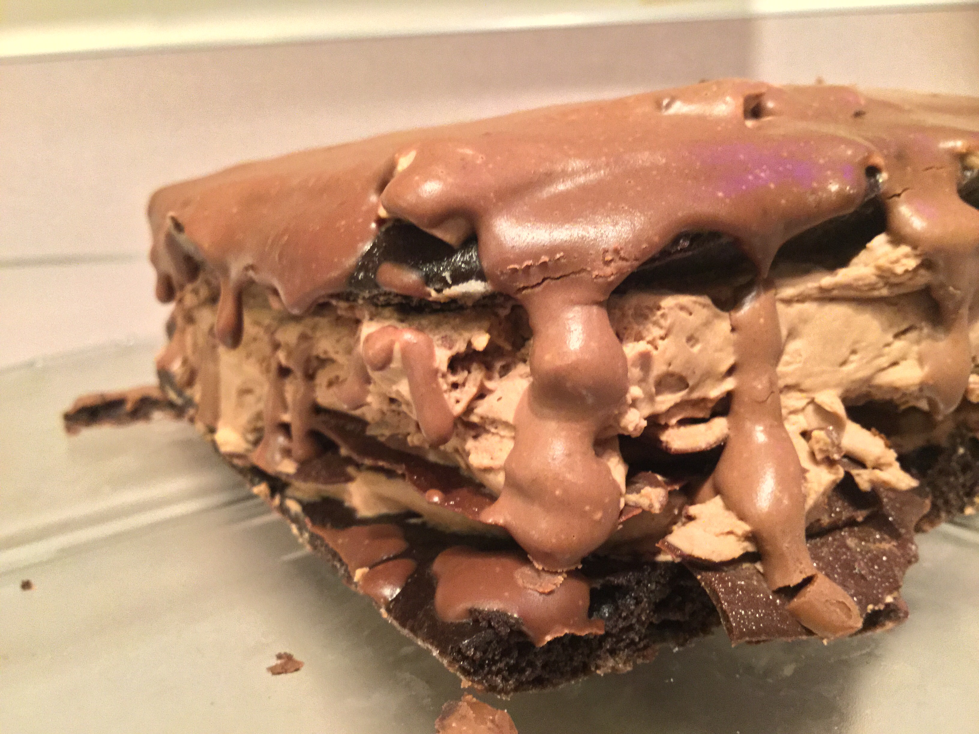 - Spread another quarter of the chocolate cream. Top with the rest of the chocolate. Spread on another quarter of the cream.