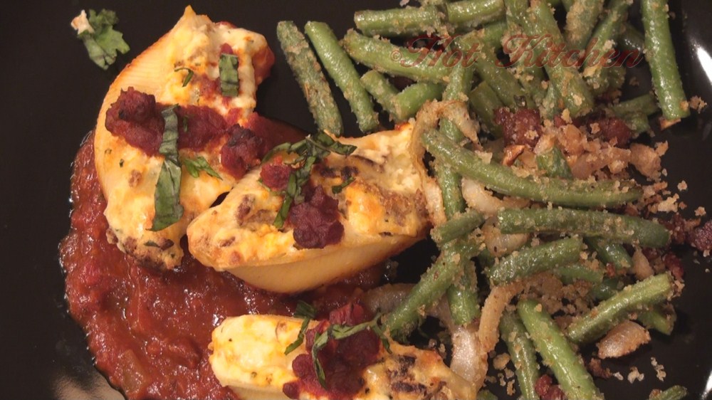 This episode features my favorite Italian-style recipes for two, including classic stuffed shells, an authentic Italian red sauce recipe (from my husband’s godmother with a few small tweaks), decadent green beans made in a skillet, fresh and crisp tomato-cucumber salad and garlic bread.