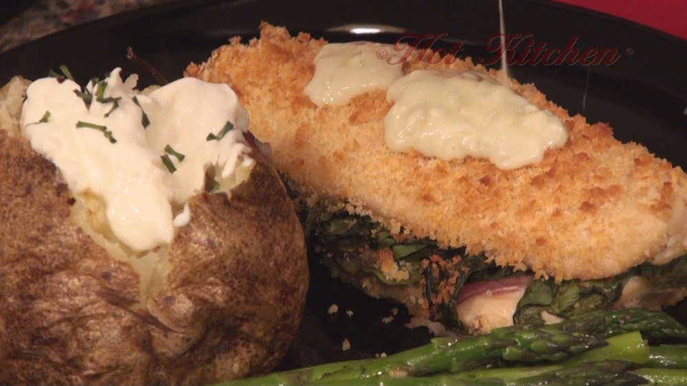 So you have stuffed chicken with bleu cheese, prosciutto and spinach topped with a decadent (and easy to make) bleu cheese buerre blanc, which is a rich butter sauce that rounds out the flavors.