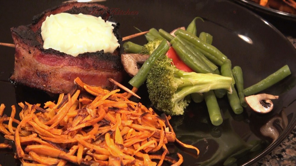 Atop the steak is a cloud-like bleu cheese concoction. Hash yams add a touch of sweetness and a punch of beta carotene. As a starter, there is savory scallop and artichoke dip. To complete the feast, the most decadent chocolate mousse ever. Make and eat it all if you dare.