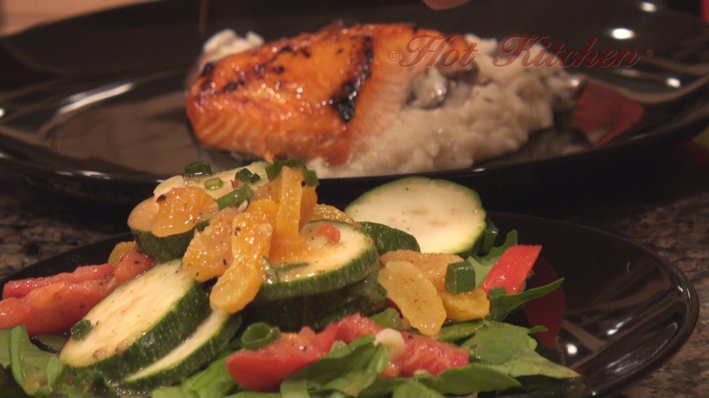 In this menu featuring recipes for two, salmon is kissed with a tangy orange glaze and paired with a creamy mushroom risotto that uses coconut milk to achieve an extraordinary flavor.