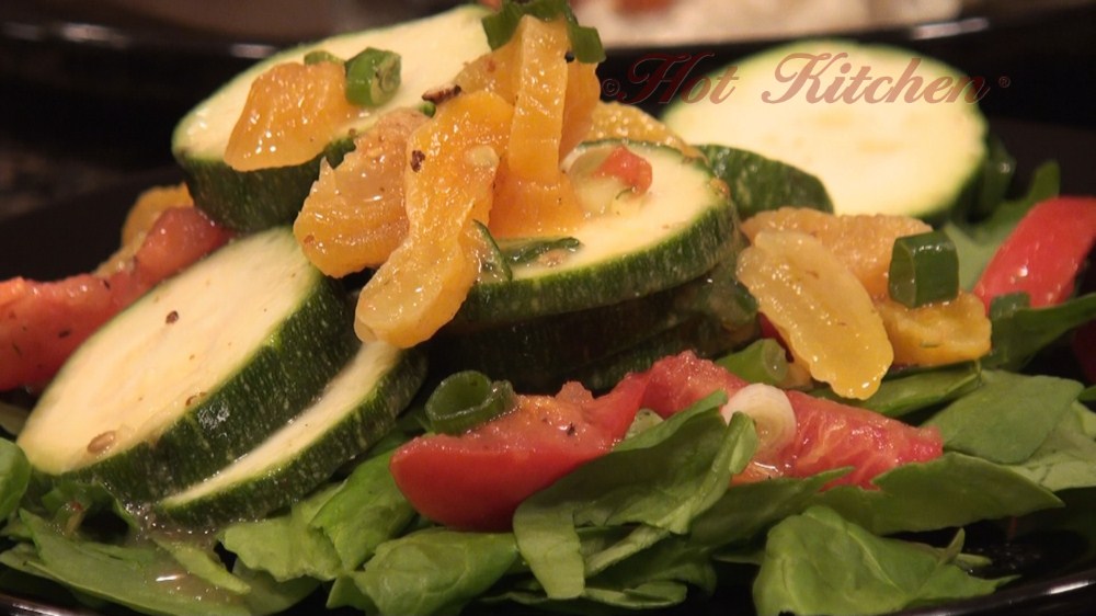 Fish and citrus are naturally good friends. Citrus helps to cleanse fish of off flavors and even offers a degree of germ killing ability, which is why lemon is usually served with fish. Playing the role of the veggies is a fresh zucchini salad. For an appetizer, traditional French Onion Soup.