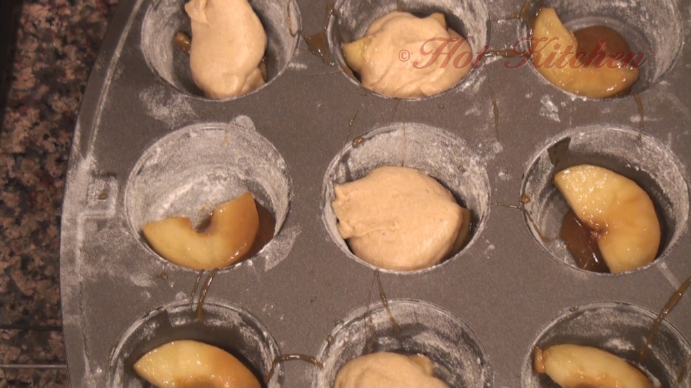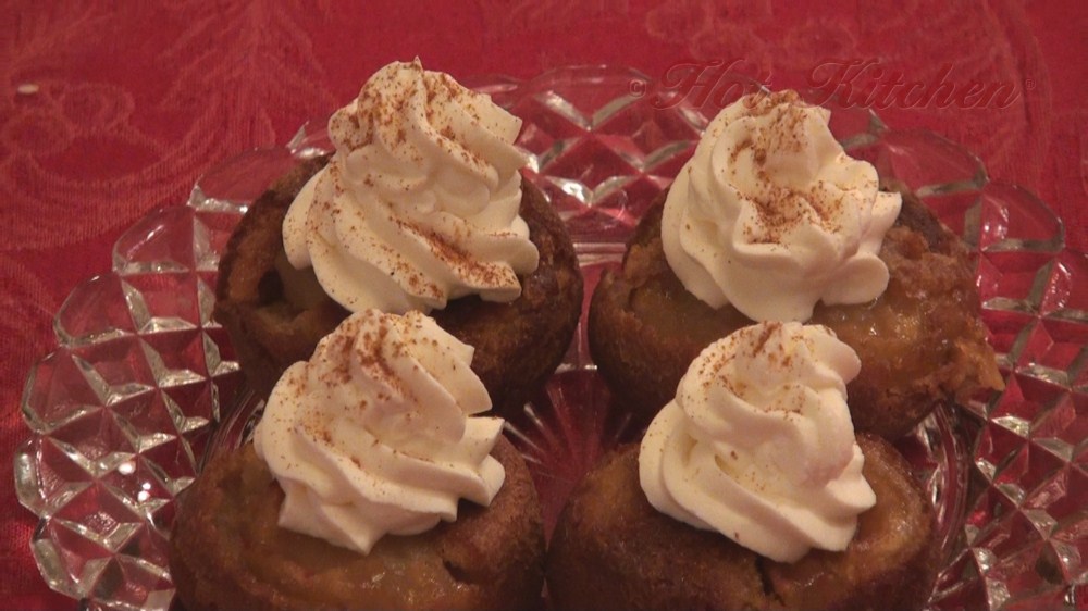For dessert, bite-sized cakes with slices of caramel apple embedded in them.
