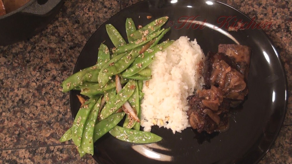 These dinner recipes for two call for the ribs calls for a fresh plum to be used as the basis for the sauce. Served on the side is rice made gourmet with an infusion of fresh ginger, and bright green snow peas coated with a light sesame seed glaze.