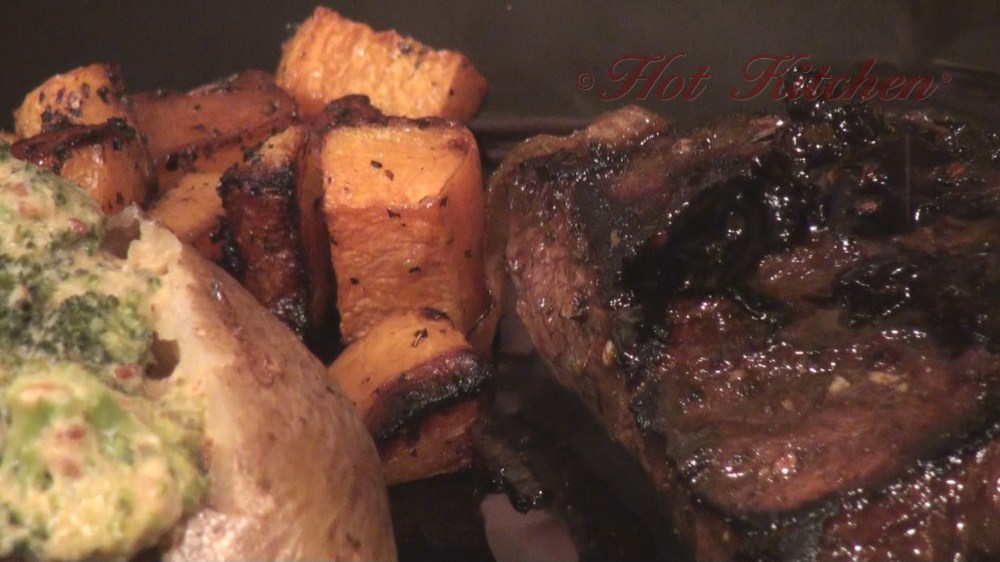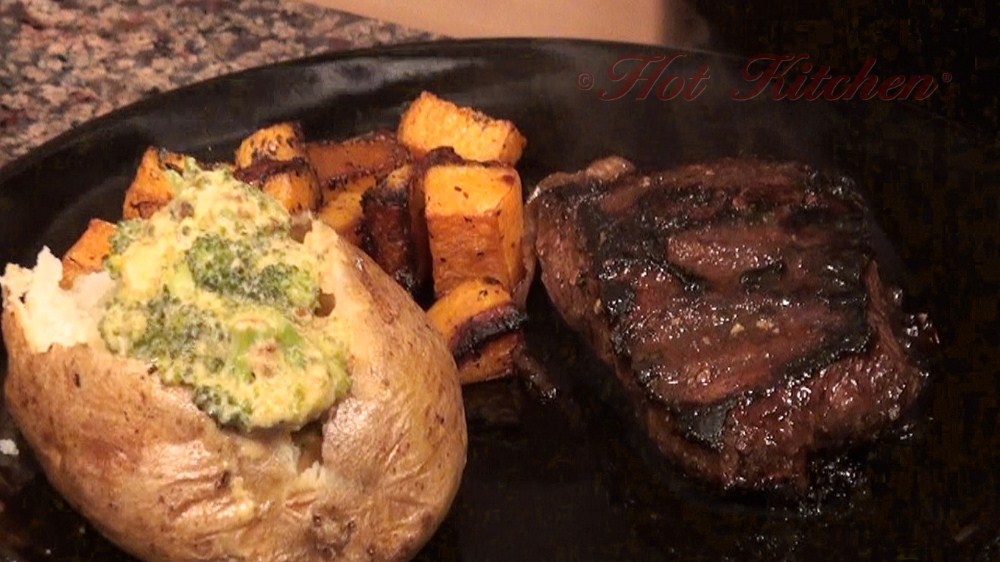 Few things turn up the heat in your kitchen more than purposefully lighting food on fire. This exciting menu of dinner recipes for two calls for flaming whiskey to finish the steak, bringing the savory caramel-onion glazes together. On the side a baked potato filled with homemade broccoli-cheddar sauce and simple roasted butternut squash. For a starter, enjoy a small batch of beefy mushroom barley soup. Inspired by American flavors.