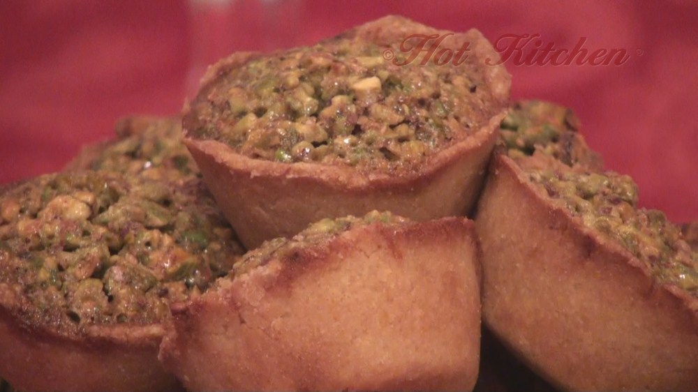 For dessert, miniature sized nut tarts that are a play on the key ingredients in baklava: pistachio and honey.