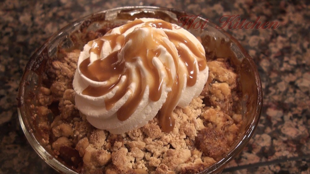 On the side are the most tender potatoes you will ever make. For dessert, an easy apple crisp with homemade butterscotch sauce.