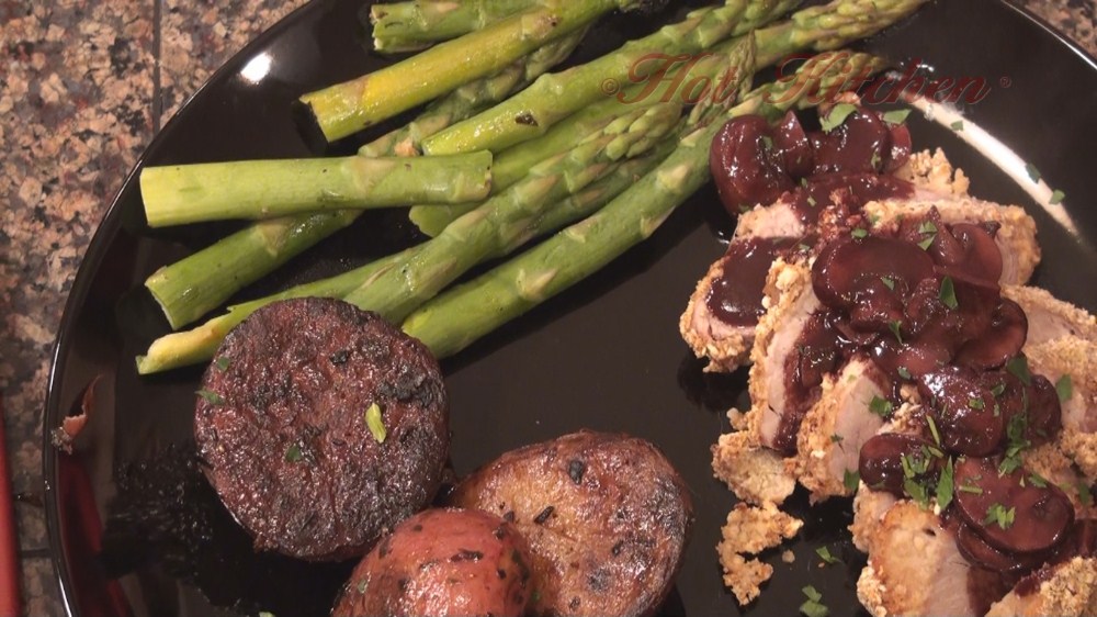 A nice salty crust clings to the tenderloin while the red mushroom sauce adds just the right pop of complementary flavor.