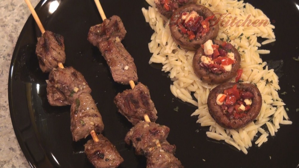 It’s Greek date night with this collection of Greek Inspired recipes for two! Greek food is known for being bright, bold, clean, and absolutely delicious. Lamb is a favorite because its flavor is distinctive and the meat is tender. With this menu any cheap cut of meat may be used; the kebabs will still be tender and delicious. Zesty stuffed mushrooms and gently seasoned orzo pasta are served on the side. Classic Greek salad plays the role of the appetizer. Inspired by the flavors of Greece.