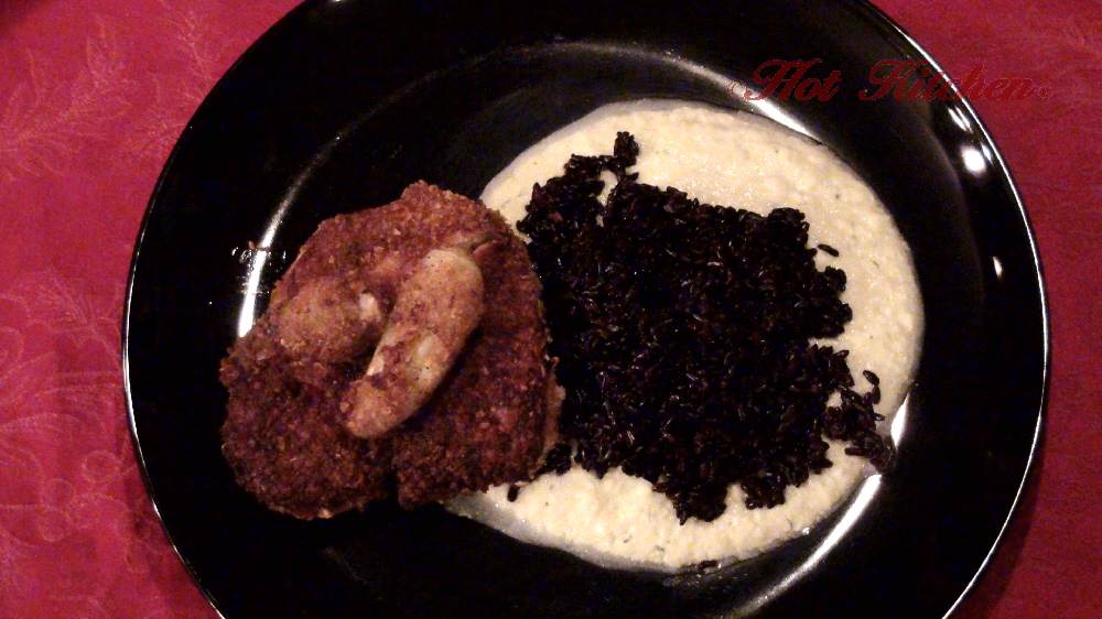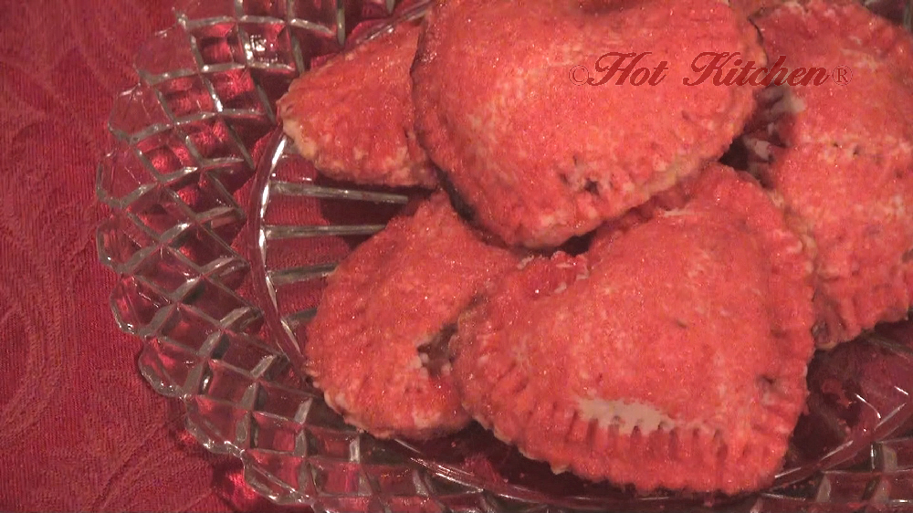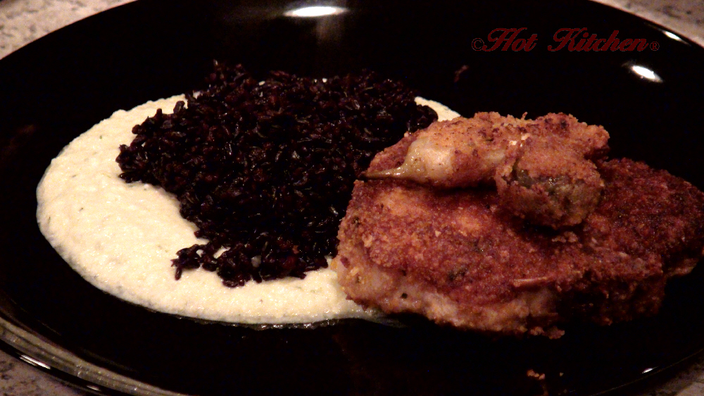 A pork chop is encrusted in cornflake crumb and pan-fried in coconut oil to crisp perfection. It’s served with forbidden rice and rich chilled zucchini puree. Garnished with fried stuffed olives and pepperocini. For dessert, seasonal fruit (nectarines) fills heart-shaped mini pies. Plus, learn about the perfect natural alternative to vegetable shortening — coconut oil.
