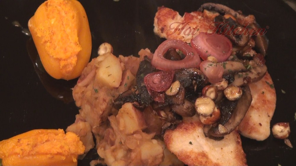 A delightful feast of recipes for two featuring a rich portobello mushroom reduction over classic schnitzle made with turkey breast; served with Wendy’s take on warm German-style potato salad, and baby bell peppers filled with a carrot-based stuffing. This menu is healthy, delicious, and just in time for Turkey season. Influenced by the flavors of Bavaria and the Northwest.